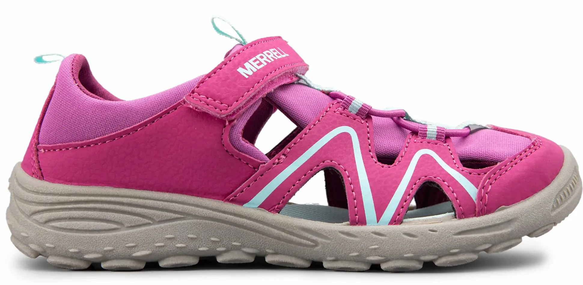Kestävästä materiaalista valmistettu lasten sandaali, jossa on vedenkestävä päällinen ja nopeasti kuivuva vuori. Joustavat hihnat ja tarranauha helpottavat sandaalin pukemista ja riisumista, jotta pääset lähtemään nopeasti seuraavaan seikkailuun. Ulkopohja ei jätä jälkiä lattiaan, ja se on muotoiltu pitäväksi monille erilaisille alustoille.