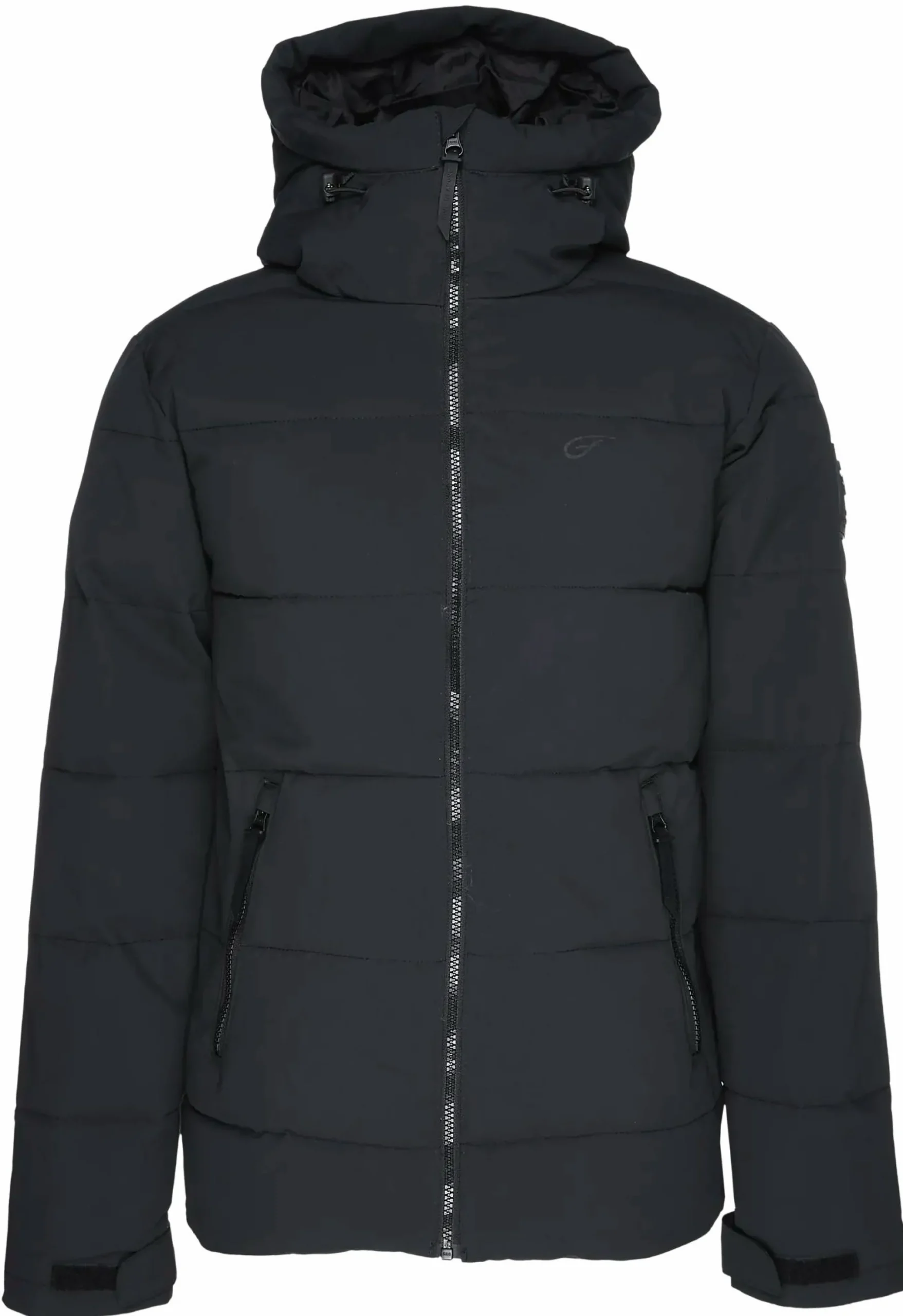 - Korkea kaulus ja säädettävä huppu