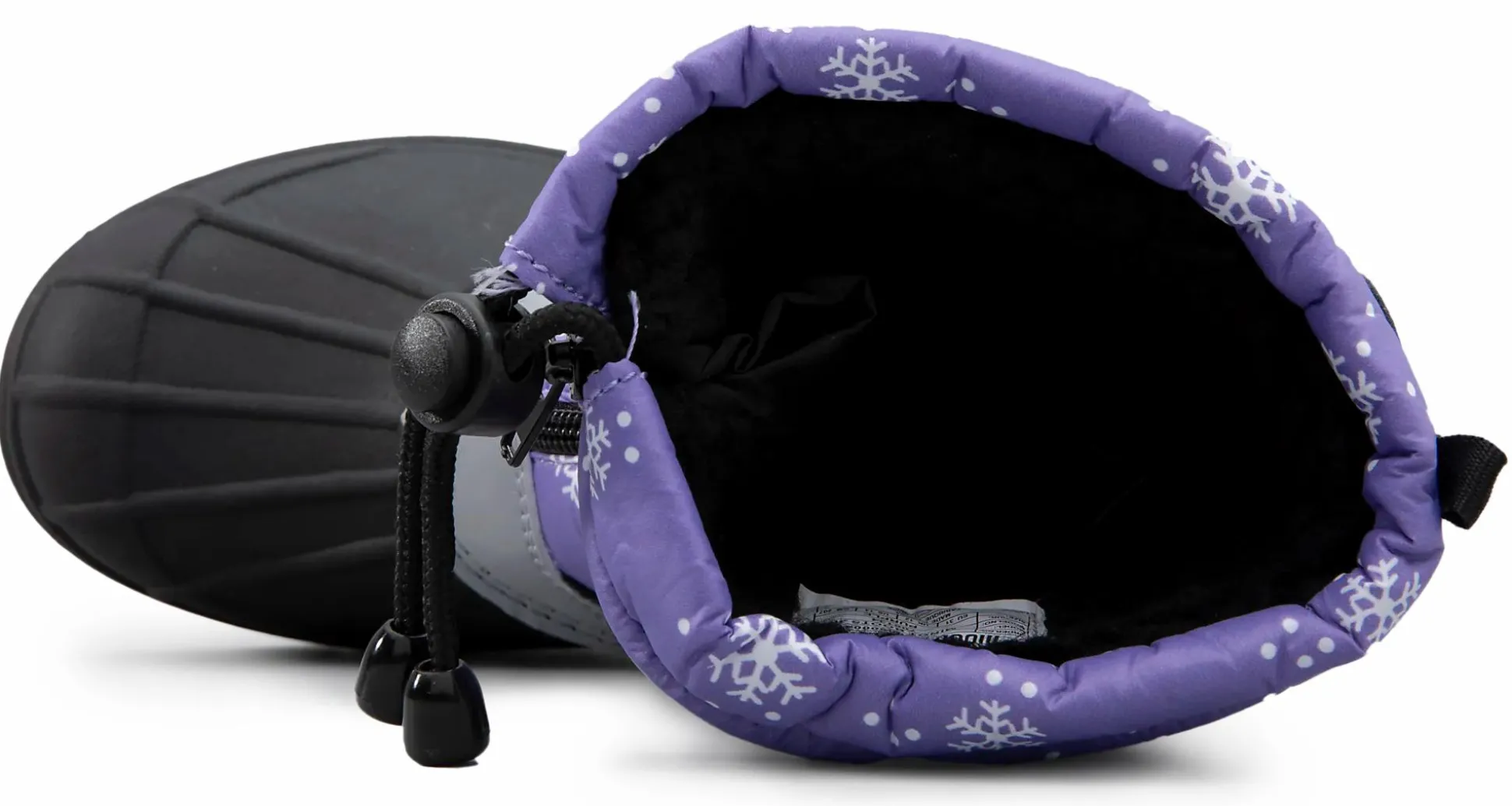 Talvisaapas, jossa on vedenpitävä kalvo ja alimpana vedenpitävä kumiosa. Helposti puettavassa ja riisuttavassa saappaassa on edessä kätevä vetoketju. Säädettävä lumilukko ylimpänä varressa pitää lumen ja kylmyyden ulkopuolella.