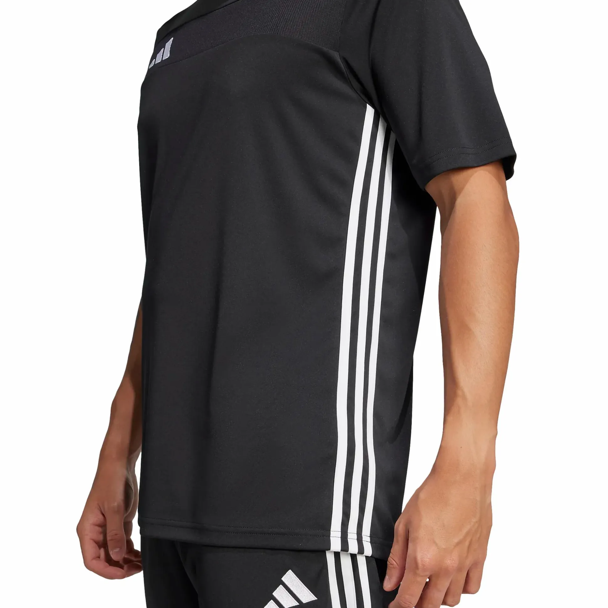 Tiro 25 Essentials Jersey adidakselta on kapeampi jalkapallopaita, joka on valmistettu pehmeästä, kierrätetystä polyesteristä. Klassinen Tiro-tyyli korostuu sivuilla olevilla 3-Stripes-raidoilla ja adidas 3 Bar -logolla rinnassa, mikä tekee siitä sopivan sekä harjoitteluun että arkikäyttöön. Paidassa on pyöreä pääntie, joka tarjoaa mukavan istuvuuden ja tyylikkään siluetin, joka toimii monissa tilanteissa – sekä kentällä että sen ulkopuolella.