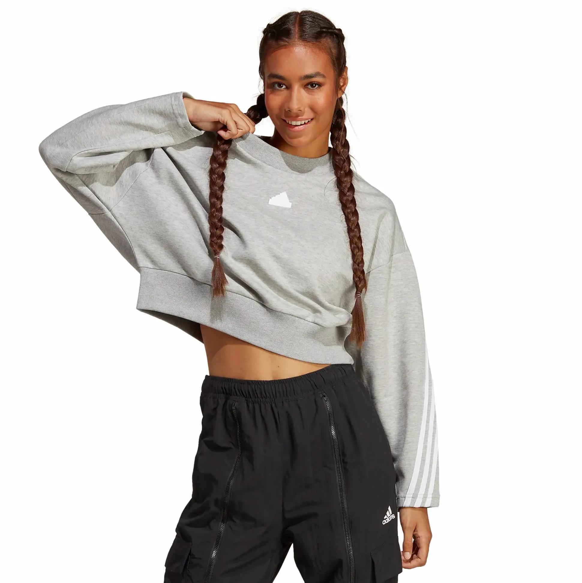 Future Icons 3-Stripes Sweatshirt on väljä, mukava ja lyhytmallinen paita. Helmassa on leveä, joustava resori, joka luo sporttisen lookin. Myös pääntiessä on resori.