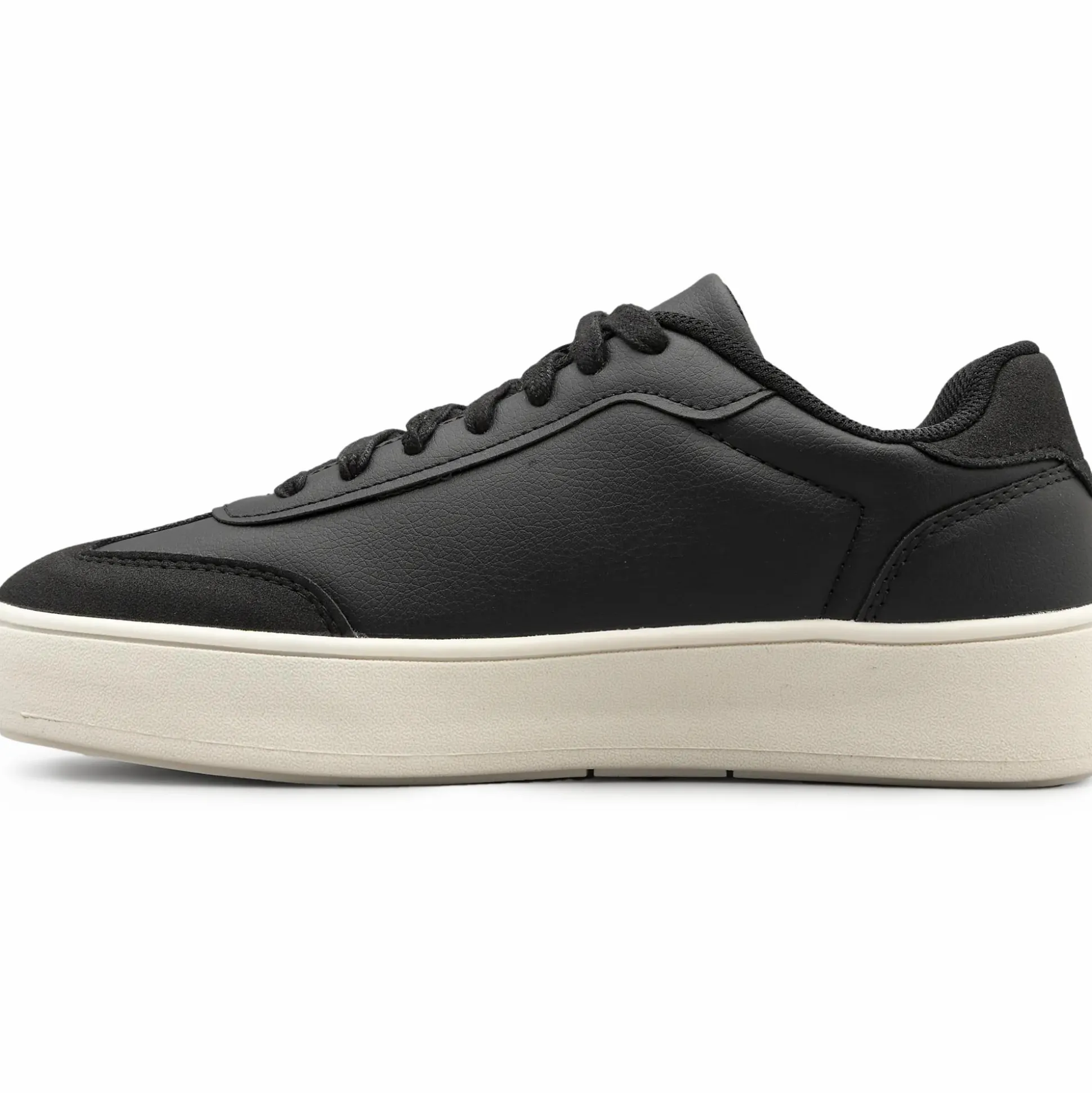 Nämä tennarit ovat yksinkertainen ja mukava valinta arkeen. Tekonahkapäällinen antaa tyylikkään ilmeen, joka on helppo yhdistää ja pitää puhtaana. Korkea TPR-ulkopohja tarjoaa hyvän pidon ja vakauden askeleeseen, olitpa sitten liikkeellä kaupungissa tai kävelyllä.