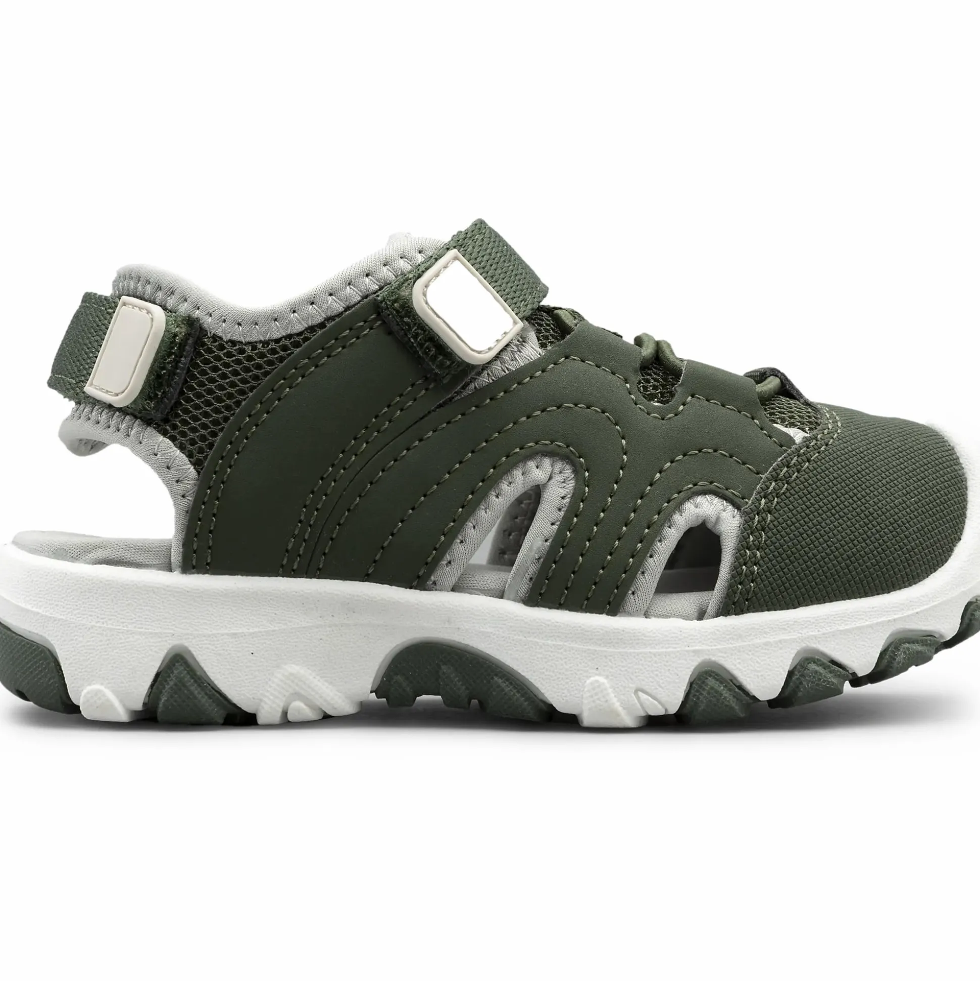 Luftig sandal med tåskydd, greppvänlig TPR-sula och ovandel i PU/polyester.