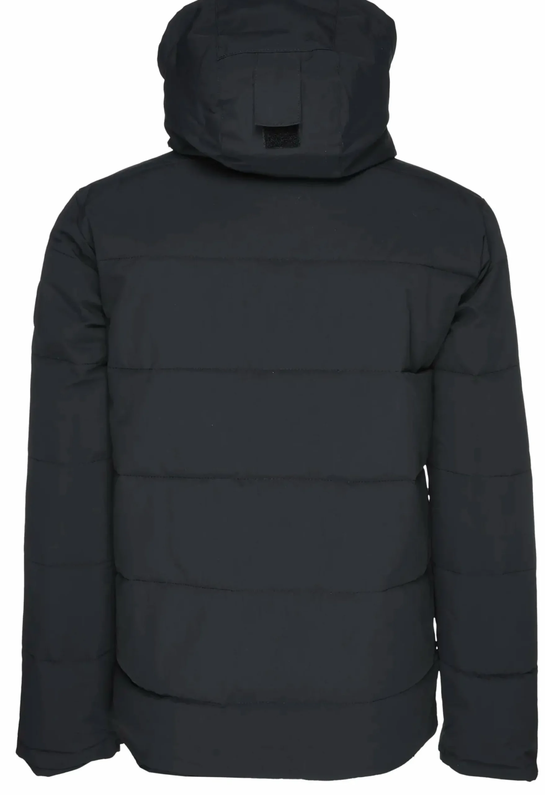 - Korkea kaulus ja säädettävä huppu
