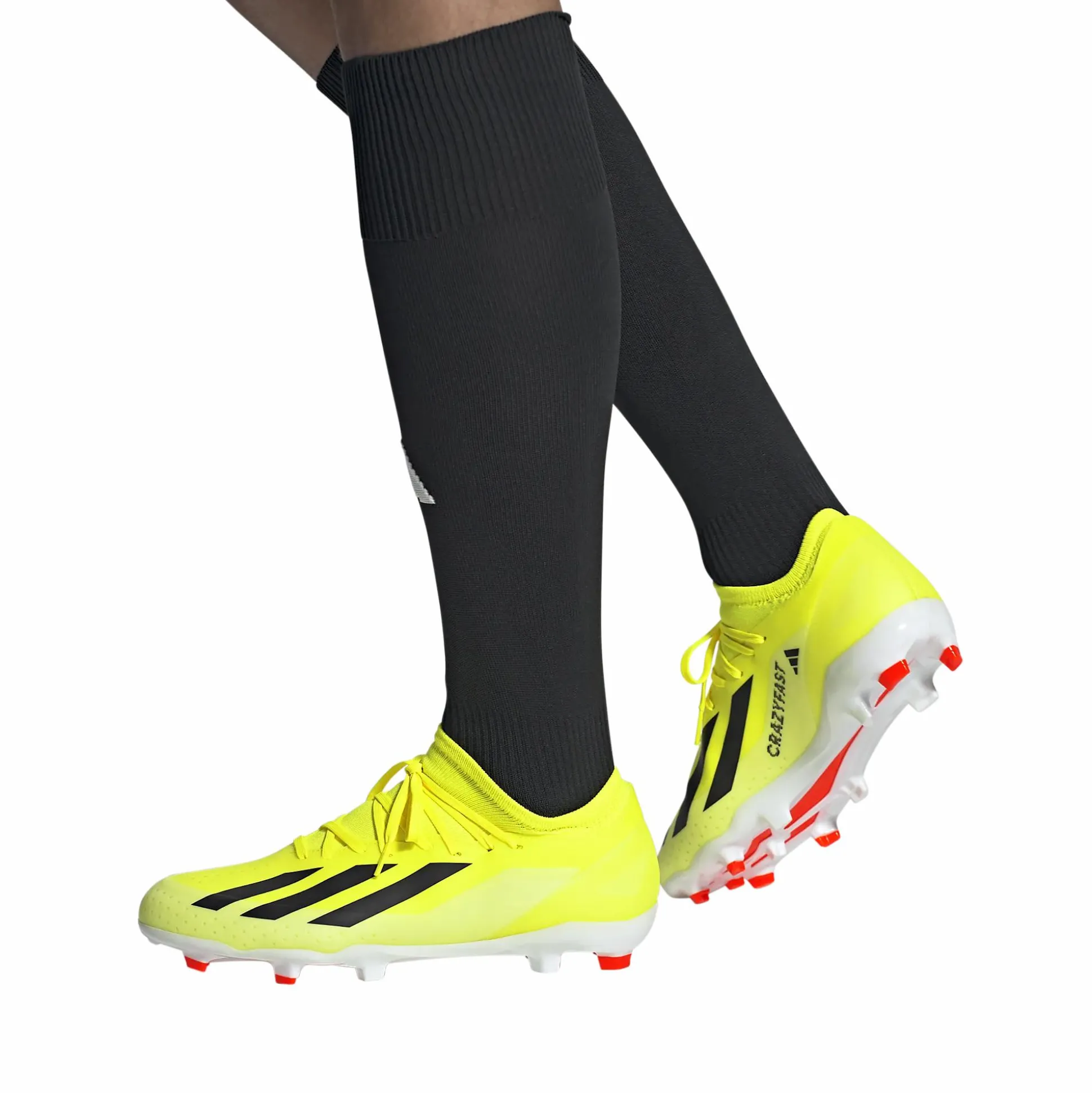 X CRAZYFAST LEAGUE FG/AG on jalkapallokenkä, jonka kevyet komponentit on kehitetty erityisesti kiihdytykseen ja nopeisiin kuljetuksiin. Jalkapallokengän ulkopohjassa on lisänappulat, jotka antavat vakautta nurmella ja tekonurmella. Pintakäsitellystä tekstiilistä valmistetussa kevyessä päällisessä on lisäkerrokset vain vahvistusta tarvittavissa paikoissa sekä sileäneuloksinen varsi, joka pitää jalan paikallaan.